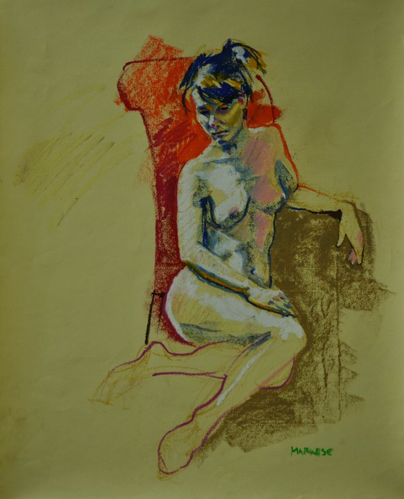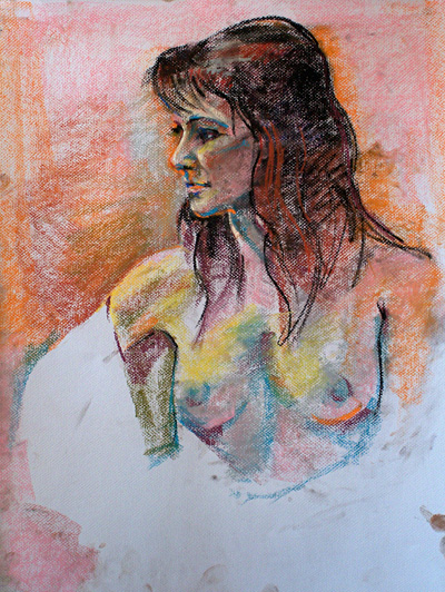Jordan has posed for us at the open figure sessions many times with good reason; She is a great model with natural poise and grace. Here are various drawings and paintings I have made of her over the years in three different mediums, acrylic paint, oil pastel, and my most often used medium soft pastel.
